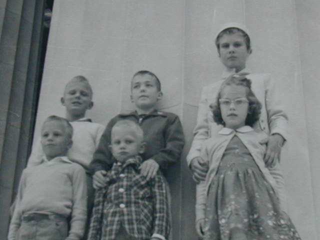 clockwise from the bottom- Chris (age 4) in Dad's lap, Steve (age 5), Kathy (age 12), Howie (age 10), Barbie (2 months) in Harriet's arms ![]() |