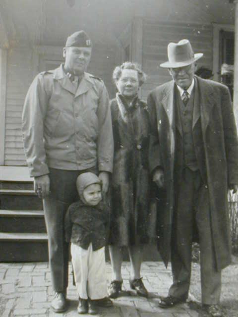 Captain James Sund sr and his parents and son James Sund jr. (ww2)